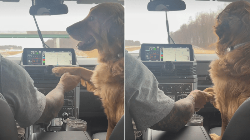 Golden Retriever Wants Dad to Hold His Paws the Entire Time He’s Driving